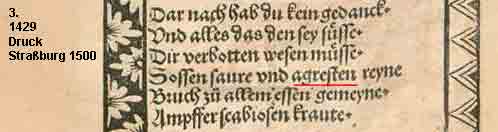 Der volkspädagogisch orientierte Theologe und Dichter Heinrich Laufenberg (um 1390-1460) hatte 1429 seinen Gesundheitsratgeber Regimen sanitatis in 6 000 Reimpaaren verfasst. 1500 erschien in Straßburg daraus eine Auswahl als Pestratgeber, in dem es zu den Speisen heißt