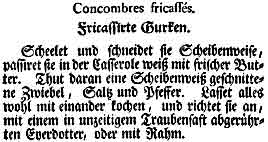 die in Butter geschwenkt und mit einer Spur Knoblauch, Pfeffer und Salz abgeschmeckt sind.In der vierten Ausgabe von 1793 hatte sich das Gericht deutlich vereinfacht: